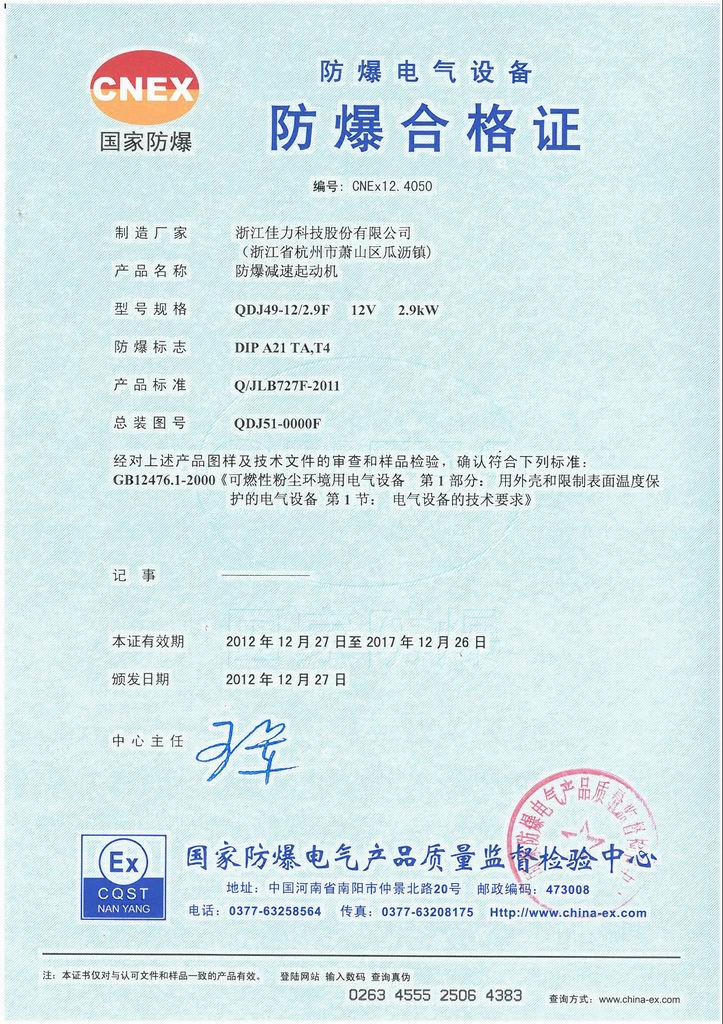 防爆證書>>詳細信息